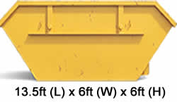 The 6 yard “builders” skip is often hired for slightly bulkier inert waste such as soil, concrete or other builders waste, as well as larger loads from domestic projects or garden waste. Its size is equivalent to 50-60 standard bin bags.